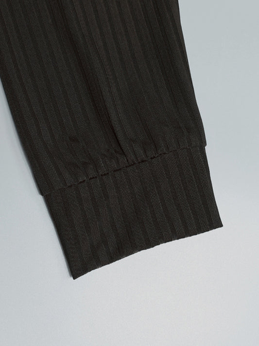 Casual stand-up collar stretch vertical strip long-sleeve V-neck Polo Shirt