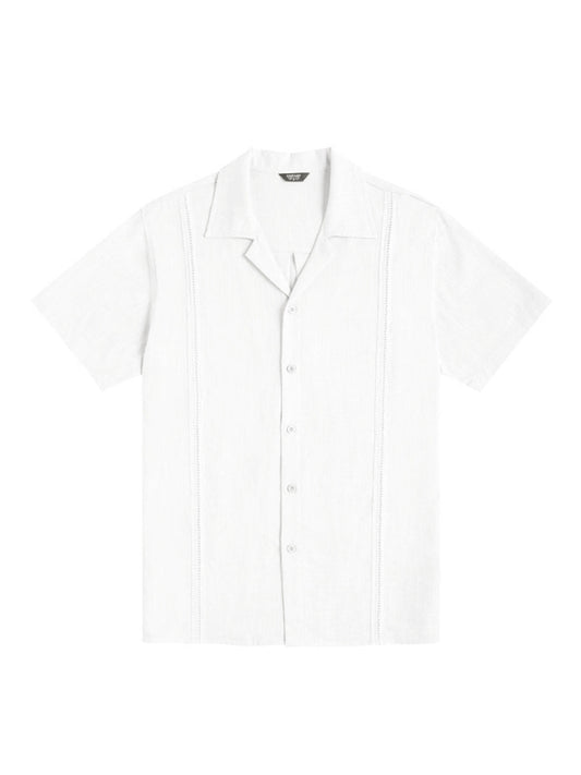 Men's Loose Casual Linen Shirt Cuban Guayabera Short Sleeve Beach Shirt