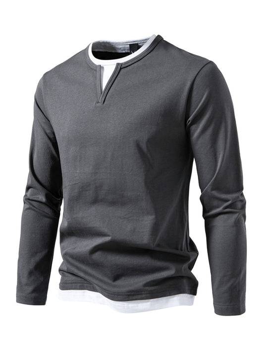T-shirt Fake two-piece double-layer V-neck stitching bottoming shirt Men's long-sleeved T-shirt
