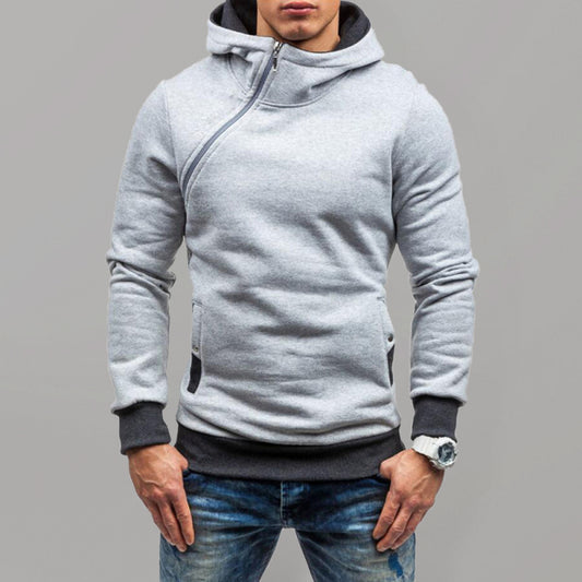 Men's solid color turtleneck zipper long sleeve sweatshirt