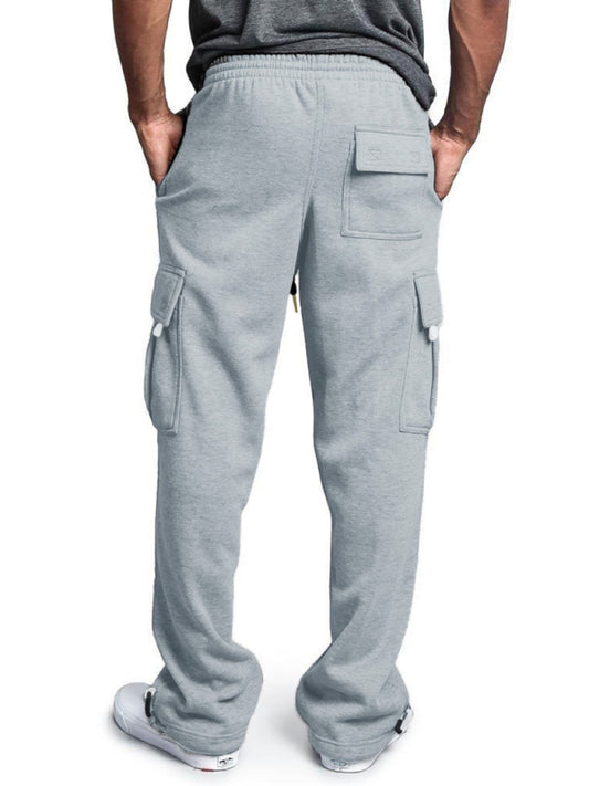 Men's Solid color elastic waist multi-pocket loose fit cargo pants