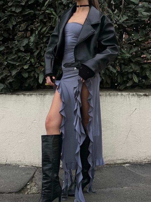 Ladies new fashion personality wrap chest irregular dress