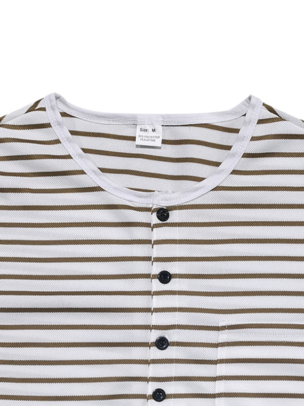 Long Sleeve Henley Shirt Casual Horizontal Striped Henley T-Shirt