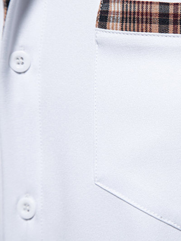 Men's Casual Collar Buttoned Plaid Color Block Short Sleeve Shirt