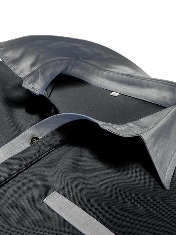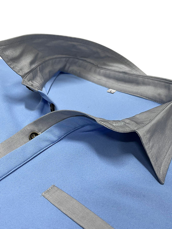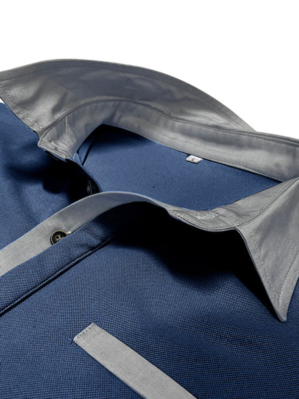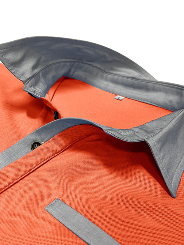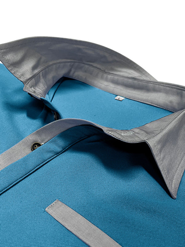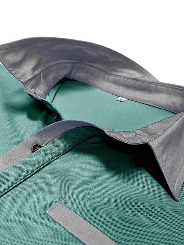Men’s Casual Color-Block Short-Sleeve Polo Shirt with Lapel Collar