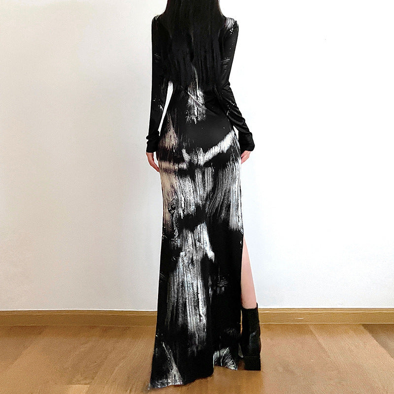This product features a high waist, long skirt, and regular sleeves made with milk silk and polyester fiber, giving it an artistic retro style. With its popular elements of hollow split and pullover design, this single piece dress comes in black and sizes S, M, and L, making it perfect for any occasion.